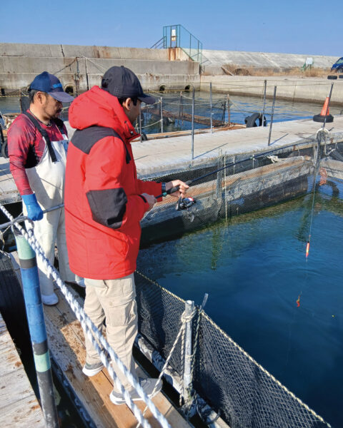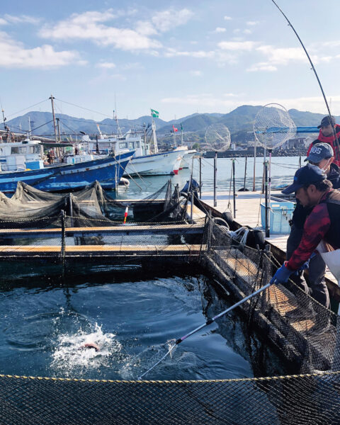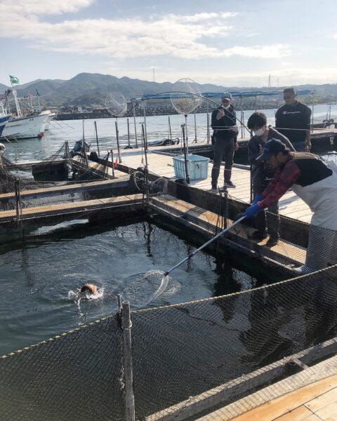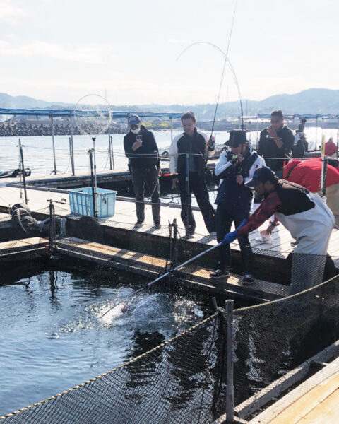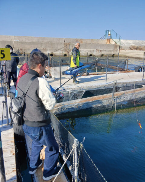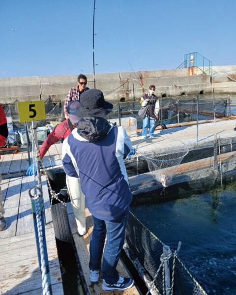 気の毒に思ったスタッフさんが、一匹も当たらない私たちを別の場所に待機している魚の生け簀に連れて行ってくれました。